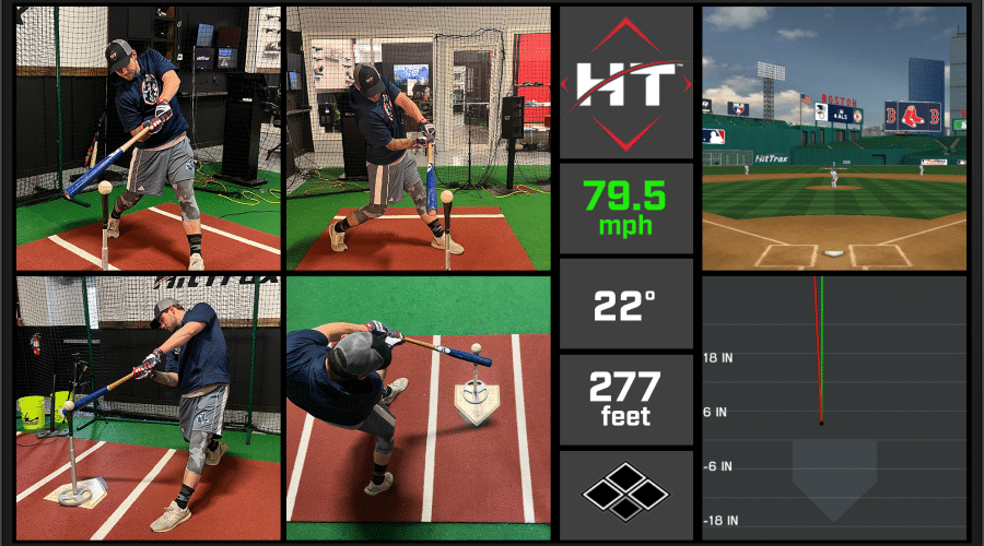 Real-time hitting data: exit velocity, launch angle, distance, contact point, and more
